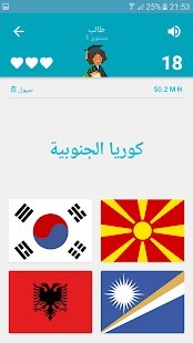 سوف تتعلم أيضا البيانات مثل العواصم والمقيمين، عندما التخمين العلم أو البلد، في كل سؤال.
