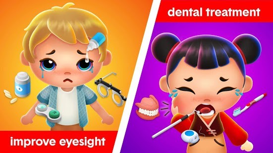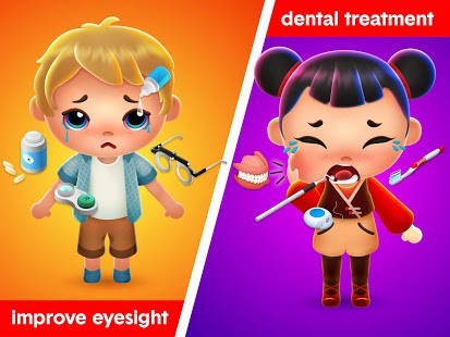 تجمع حزمة ألعاب الأطفال بين ألعاب طبيب الأسنان والألعاب الطبية وألعاب المستشفيات ليتم لعبها على منصة ألعاب طفل واحد. يتعامل الأطفال مع المشكلات الصحية المختلفة لدى المرضى ، مثل مشاكل الأسنان ، وكسر العظام ، والتهابات العين ، وأمراض الأنف ، ومشاكل الأذن ، واضطرابات أكل الأطفال ، إلخ.