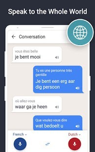 تم تطوير مترجم جميع اللغات مع مراعاة سهولة الاستخدام وهو مثالي للمبتدئين. مترجم الصور لنظام Android هو ترجمة الكلام إلى نص لتلبية احتياجاتك اليومية. الترجمة الصوتية هي طريقة سهلة للتحدث بين الأشخاص بلغات مختلفة باستخدام تطبيق الترجمة العالمي ، ما عليك سوى النقر على أيقونة الميكروفون والتحدث بكلمة أو جملة بلغتك الأم. سيؤدي ذلك إلى ترجمة اللغة المختارة للترجمة إلى اللغة المطلوبة. يمكنك أيضًا نسخ الترجمة من النص المترجم ولصقها وإرسالها إلى أصدقائك.