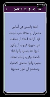 ينبغي تقديم النُّصح لكلِّ من احتاجه إن كان الناصح عالماً بما ينصح به، ومن أصناف الناس الذين هم بحاجة النصح المستمرّ؛ النساء على اختلاف أعمارهنّ، ومناصبهنّ، ومكانتهنّ في المجتمع، وبشكلٍ خاصٍّ فإنّ البنات في مقتبل العمر أشدّ حاجةً للنصائح من ذوي الخبرة والمعرفة بأحوال الدنيا.هذا التطبيق يحتوي على مئات النصائح في شتى مجالات الحياة نصائح عامة للبنات هو تطبيق خفيف يعمل بدون انترنت نعمل من خلاله على تطوير ذاتك بغية عيش حياة رائعةهذا التطبيق سوف يجعل من هاتفك خير ناصح لكأنواع النصائح التي يحتوي عليها تطبيقنا :=> نصائح في الحب => نصائح للعناية بالشعر=> نصائح للفم والأسنان => نصائح الدورة الشهرية=> نصائح لإختيار الملابس => نصائح للعناية بالأظافر=> نصائح للعناية بالجمال=> نصائح للعناية بالبشرة=> نطائح لفقدان الوزنلا تنسي تقييم تطبيقنا إذا أعجبك.