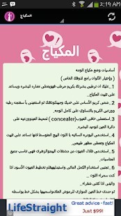 - تقشير وتنعيم الجسم - تغذية البشرة - صبغة الشعر المناسبة - البيديكير والمنيكير - الحناء والنقش - تعطير الجسم - المكياج