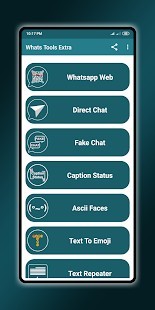 يمكنك تنزيل تطبيق whats على الويب والدردشة المزيفة ومكرر النص .. كل تطبيق بمفرده مما يعني 7 تطبيقات في المجموع أو يمكنك بسهولة تنزيل الأدوات وتجاهل جميع التطبيقات السبعة ، كما تشغل الأدوات مساحة صغيرة على هاتف Android.