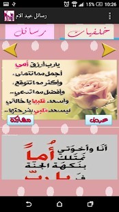 ماما كلمة صغيرة وحروفها قليلة لكنّها تحتوي على أكبر معاني الحبّ والعطاء والحنان والتّضحية، وهي أنهار لا تنضب ولا تجفّ ولا تتعب، متدفّقة دائماً بالكثير من العطف الذي لا ينتهي، وهي الصّدر الحنون الذي تُلقي عليه رأسك وتشكو إليه همومك ومتاعبك.لذلك اعتدنا اليكم اقوى برامج تهنئة رسائل و صور عيد الام و يحتوي البرامج علي كروت التهنئة و كروت معايدة و رسائل مكتوبة و صور عيد الام .التطبيق سهل يمكنك من خلال تطبيق عيد الام تداول كروت التهنئة و بطاقات المعايدة و رسائل مكتوبة و صور عن طريق مواقع التواصل الاجتماعى . يمكنك ايضا من خلال تطبيق عيد الام ارسال رسائل مكتوبة و كروت التهنئة و بطاقات المعايدة عن طريق ارقام الهاتف .