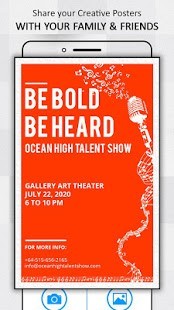 يمكنك إنشاء ملصقات ترويجية وإعلان وإعلانات عروض وصور الغلاف أثناء التنقل مع خلفيات مذهلة وأنسجة وتأثيرات وخطوط وملصقات واسترعي الانتباه الذي تريده.يعد Poster Maker أداة غير عادية ستحول مشاركاتك العادية إلى ملصقات إبداعية في غضون ثوان.