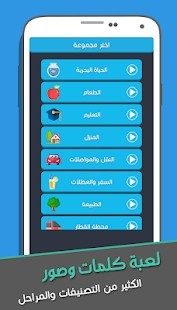 في لعبة كلمات وصور سوف تعرض كل مجموعة تصنيف معين مثلا تصنيف الحياة البحرية سيعرض عليك صور كائنات بحرية وعليك ان تحزر اسمائها وتعثر عليها من جدول الحروف او جدول الكلمات المبعثرة , كل المراحل في المجموعة تشير الى نفس التصنيف وعليك ان تحزر الكلمات في سياق اسم المجموعة