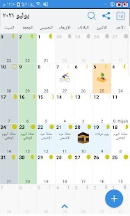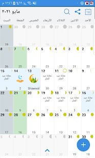 التقويم متاح باللغة العربية إذا كان الهاتف مضبوطًا على اللغة العربية. التقويم الإسلامي مرئي بشكل افتراضي. يمكن تكوين التقاويم الأخرى في الإعدادات.