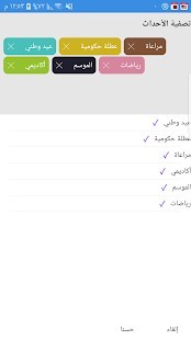 من الممكن عرض الأحداث ذات الصلة فقط ، مثل العطلة الوطنية والعطلات الحكومية في المملكة العربية السعودية. من الممكن أيضًا ضبط إشعارات الأحداث. يمكنك بسهولة العثور على الأحداث من خلال البحث باستخدام الكلمات الرئيسية.
