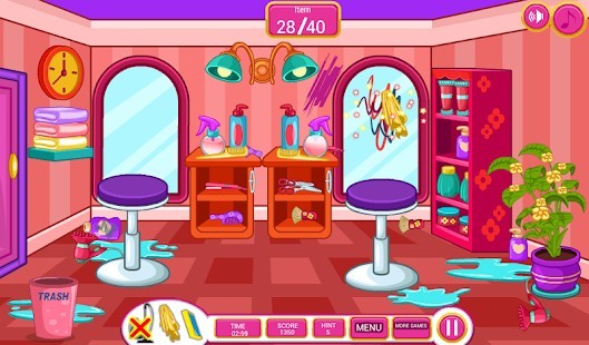 مع لعبة التنظيف هذه يجب عليك إعادة وضع كل شيء في مكانه قبل السماح لزبائنك بالدخول. هنا يجب عليك طي المناشف، و ترتيب الزجاجات، والتقاط الكراسي، وكذلك إعادة ترتيب إطار الصورة، تنظيف الأرض، مسح الأرضية وتنظيف المرايا. مع ذلك التنظيف الكثير الذي يتعين عليك عمله ستكون في سباق ضد الوقت بحيث لا يرى زبائنك الفوضى. لذلك إذا كنت تريد تشغيل صالون لتصفيف الشعر لماذا لا تجرب لعبة التنظيف هذه اليوم وترى ما إذا كان يمكنك ترتيبه قبل فتح المحل.