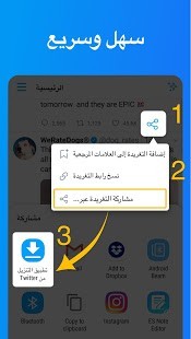 هل تريد تنزيل مقاطع فيديو Twitter وحفظ صور GIF من Twitter بسرعة؟ هل تبحث عن تطبيق تنزيلخفيف لحفظ مقاطع الفيديو وصور GIF من Twitter بسهولة؟ أنت بالتأكيد تحتاج لتجربة هذا التطبيق! إنه مجاني 100%!من خلال خطوات بسيطة (مشاركة التغريدة على تطبيقنا)، يمكنك تنزيل مقاطع الفيديو المفضلة لديك وصور GIF بسهولة.