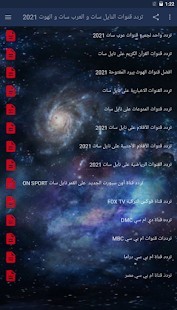 يضم تردد واحد لجميع قنوات عرب سات 2021 و ايضا معرفة تردد قنوات القرآن الكريم و الاخبارية و الرياضية و الاكشن و القنوات السعودية و المصرية و مقسم لجميع المحتوى التلفزيوني حمل الان تطبيق تردد قنوات النايل سات و العرب سات و الهوت 2021 مجانا