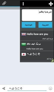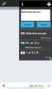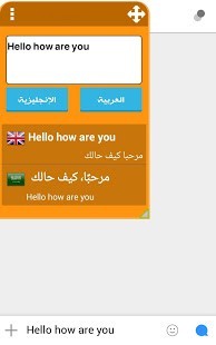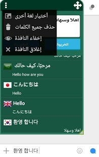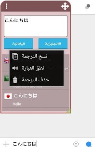 الترجمة الفورية بأستخدام النافذة العائمة لسهولة وسرعة الترجمة وإمكانية أستخدام نافذة الترجمة داخل أي تطبيق مميزات التطبيق :- أستخدام النافذة العائمة ( المصغرة ) وترجمة النصوص من خلالها لسهولة مشاركة الترجمة داخل أي تطبيق والتحدث بأي لغة .- إمكانية تغيير اللغة من النافذة العائمة دون الحاجة للعودة الى التطبيق- أمكانية الإختيار من بين أكثر من 20 لغة والترجمة منها وإليها بسهولة تامة .- نطق الكلمات المترجمة لجميع اللغات .- حفظ الكلمات والرجوع لها في أي وقت .- سهولة التحكم في النافذة العائمة من تصغير وتكبير وإخفائها في الإشعارات ..