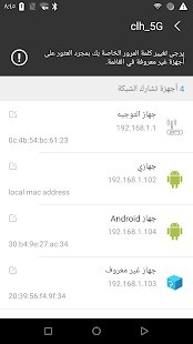 • الذين يستخدمون بلدي واي فاي أذكى طريقة لإظهار الأجهزة المتصلة بنقطة واي فاي الشخصية الخاصة بك. عرض تفاصيل (نوع الجهاز وعنوان IP وعنوان mac) للأجهزة المتصلة لمساعدتك في العثور على من يستخدم شبكة WiFi.