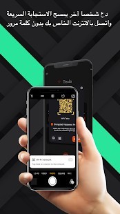 قم بمشاركة الواي فاي الخاص بك أو نقطة اتصال هاتفك مع أصدقائك باستعمال كود الاستجابة السريع. كل ما يحتاجون إلى القيام به هو مسح كود الاستجابة السريعة ليتمكنوا بكل سهولة من الاتصال بالإنترنت الخاصة بك بدون استخدام كلمة المرور.